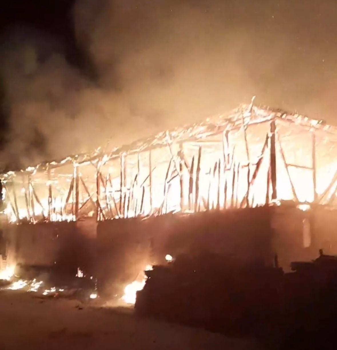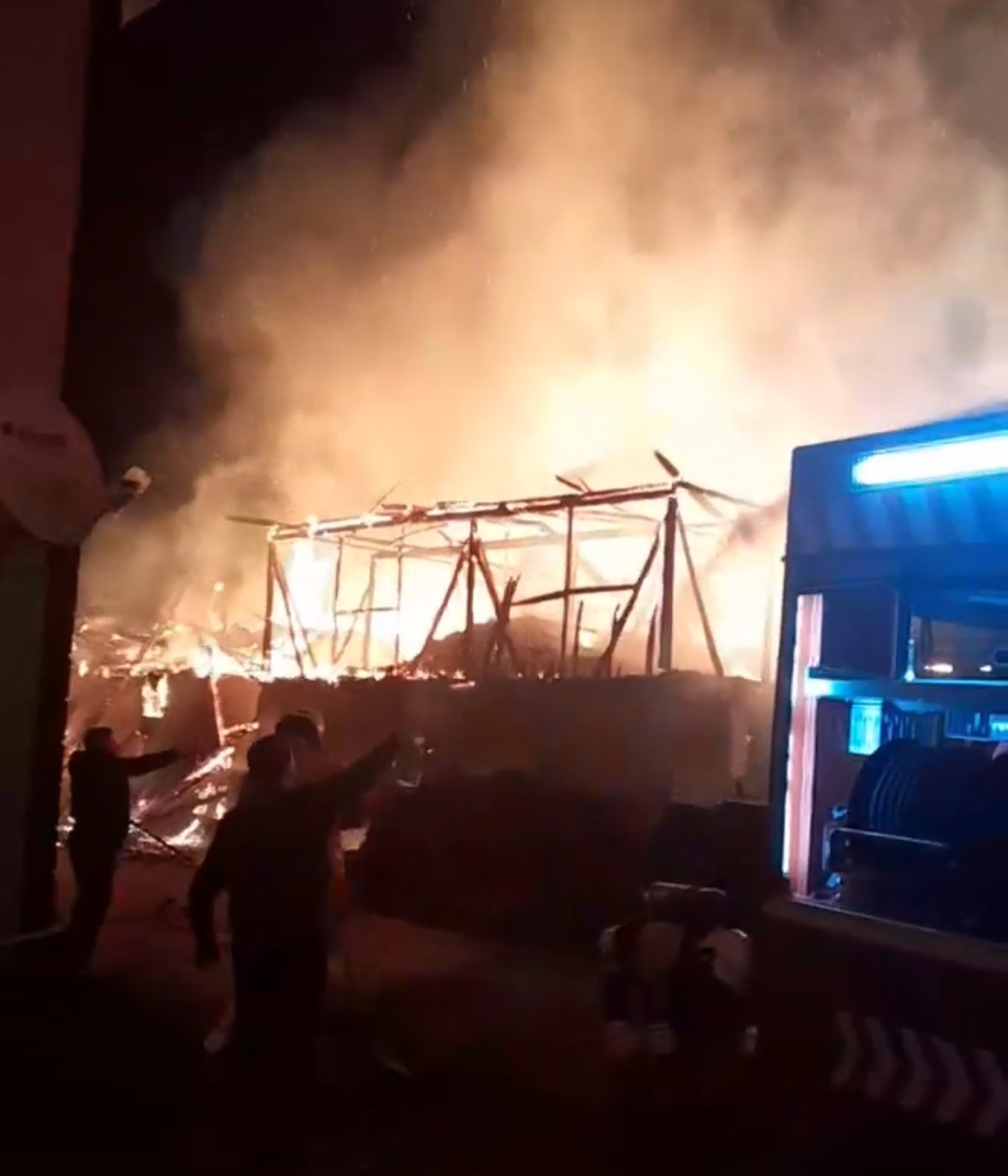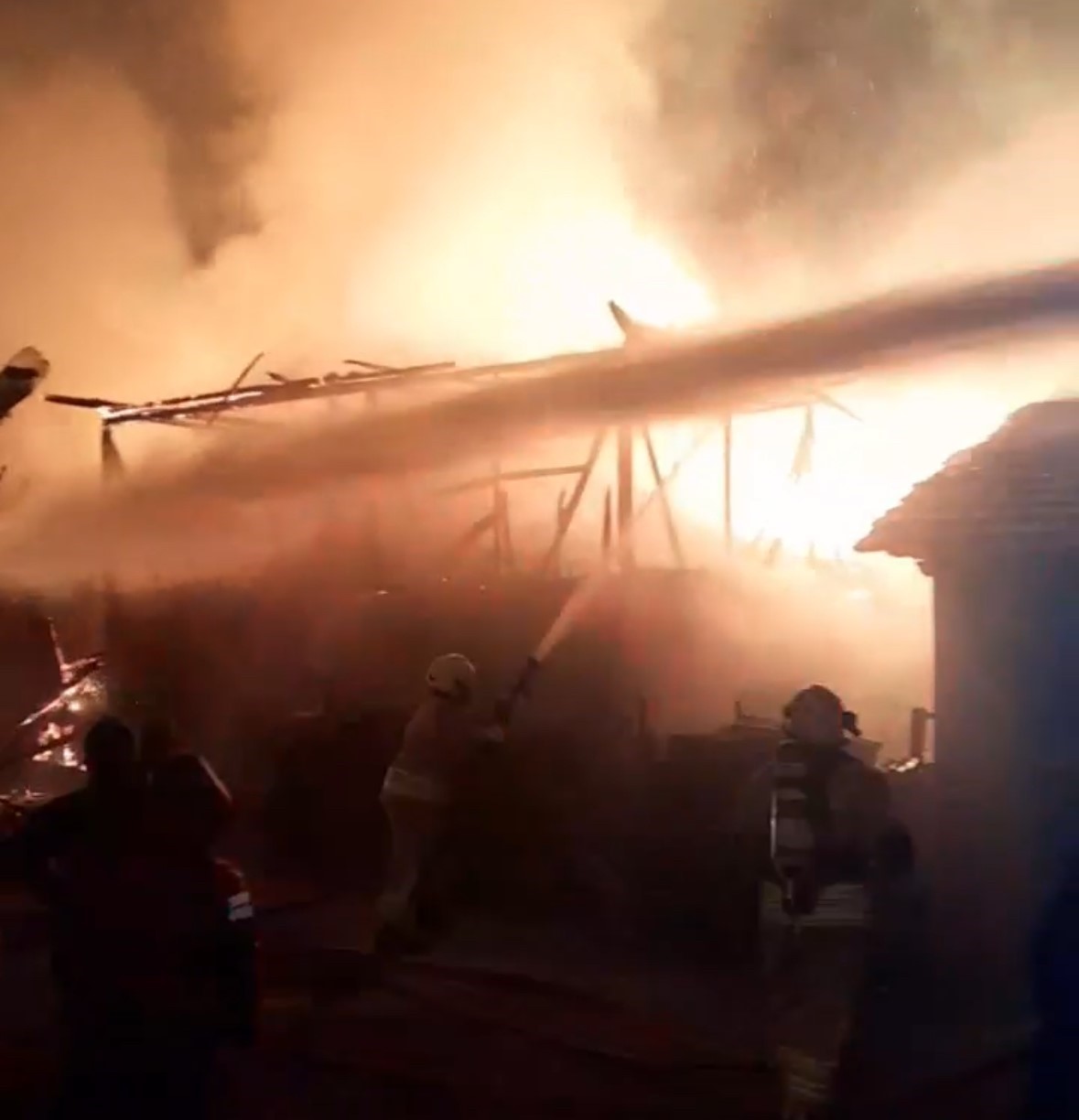 Düzce’de gece saatlerinde ahır ve samanlık alev alev yandı. Tamamı kullanılamaz hale gelen yapıda 5 büyükbaş hayvan telef oldu.