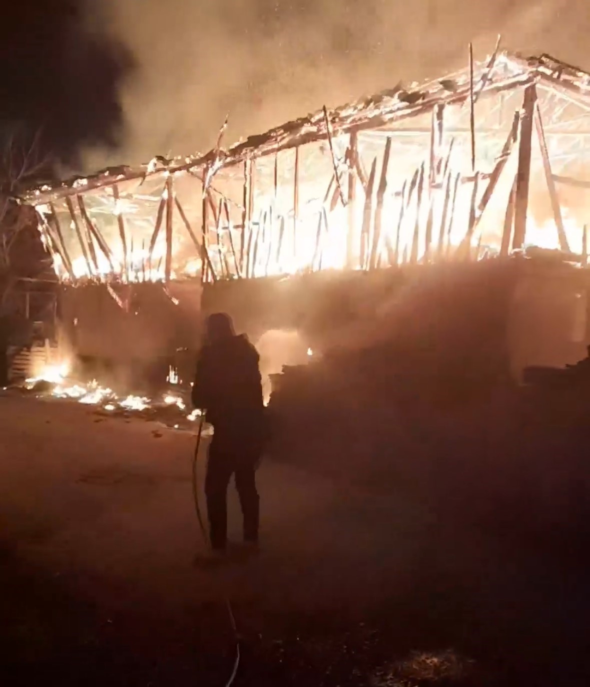 Ahır ve samanlık yandı 5 hayvan telef oldu