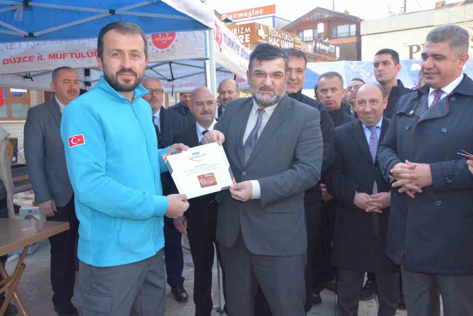 Merkez Büyük Cami’de düzenlenen programa Vali Selçuk Aslan, Düzce Belediye Başkanı Dr. Faruk Özlü, Rektör Prof. Dr. Nedim Sözbir, protokol üyeleri ile AFAD, UMKE, MEB-AKUB, Düzce İtfaiyesi Arama Kurtarma, Düzce Üniversitesi Afet ve Acil Durum Arama Kurtarma ekipleri, AFAD gönülleri ve sivil toplum kuruluşları katıldı.