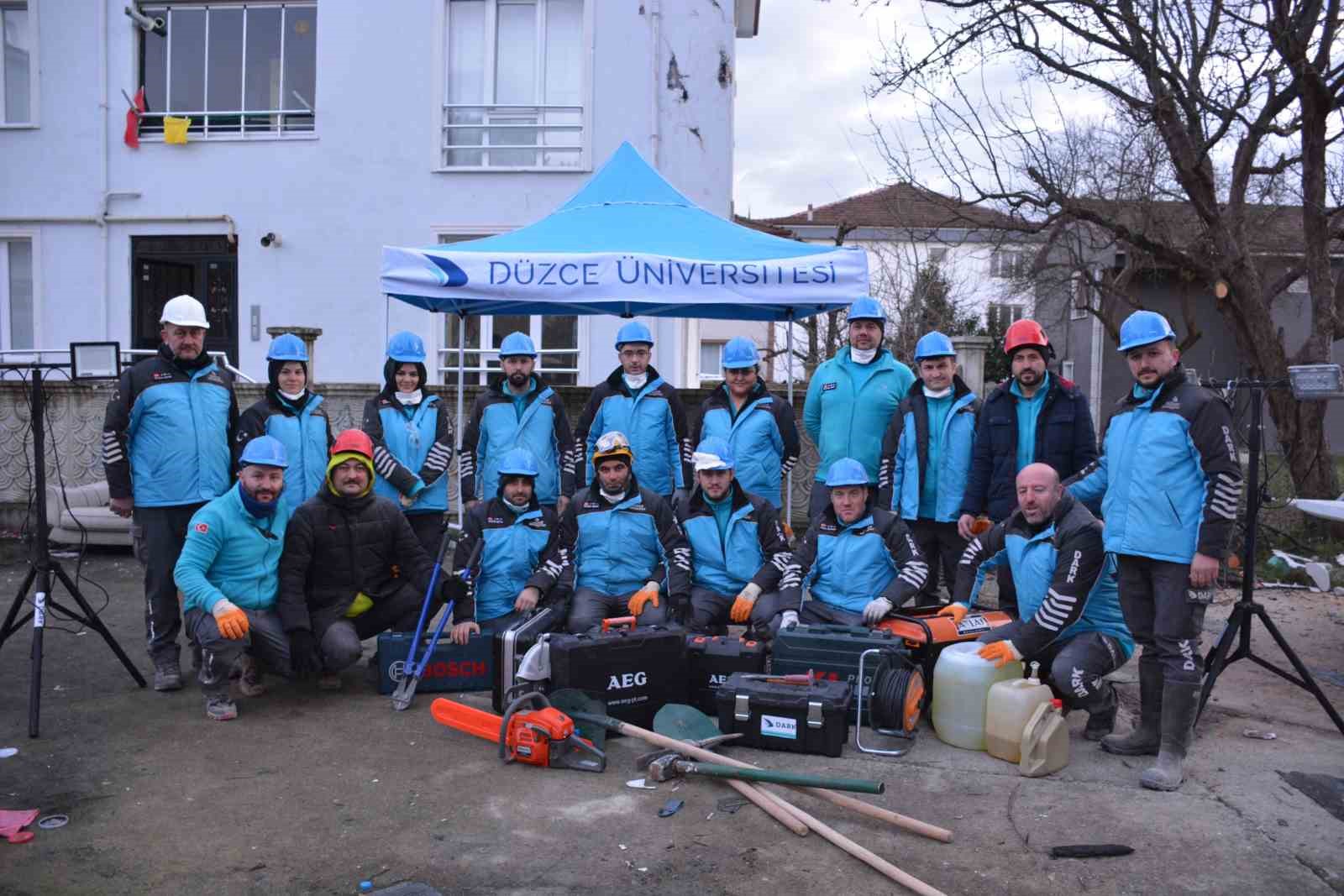 Düzce Üniversitesi Afet ve Acil Durum Arama Kurtarma Birimi (DARK) personelleri, 6 Şubat depremi dolayısıyla düzenlenen programda, Destek AFAD Gönüllüsü belgelerini törenle aldı.