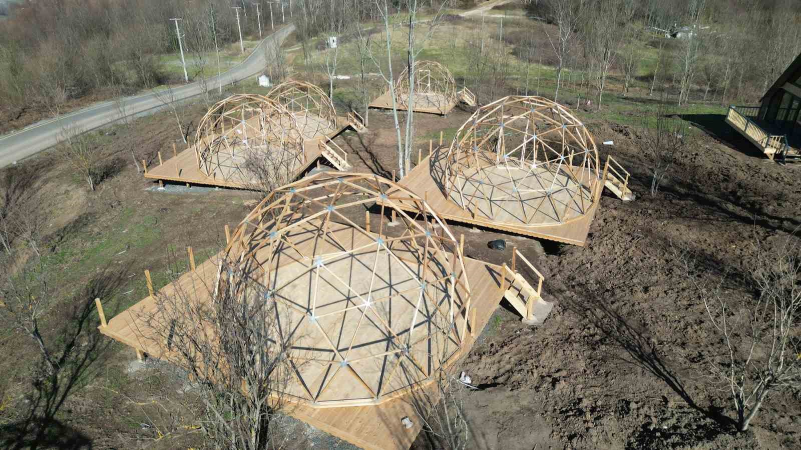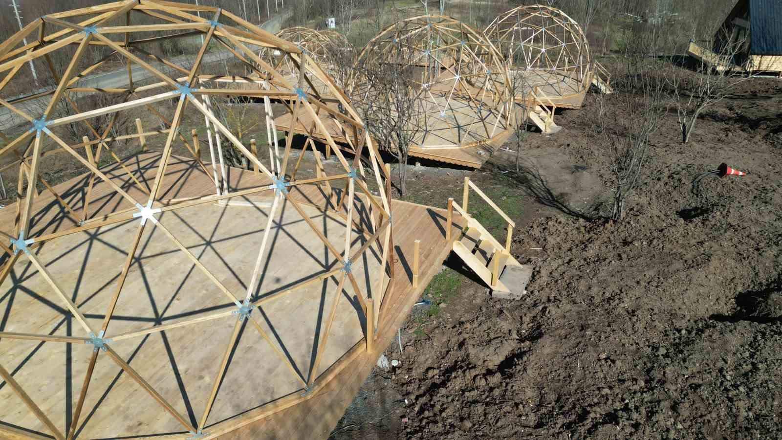 DÜZCE(İHA) – Düzce’nin Aydınpınar Şelalesinde yeşilin bin bir tonu arasında yapımı devam eden dome çadırların iskelet montajları tamamladı.
