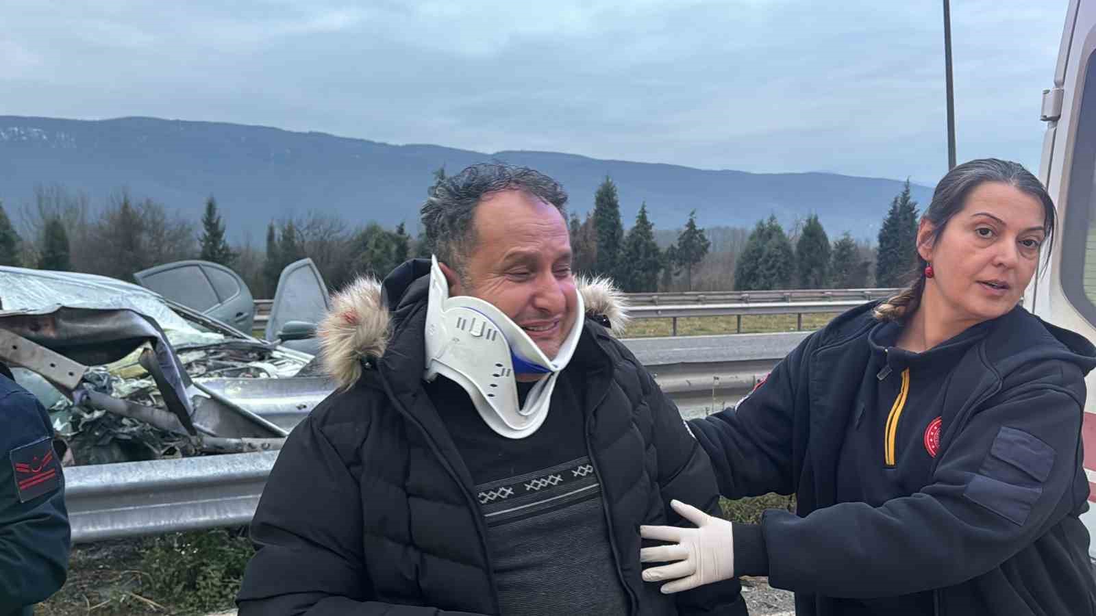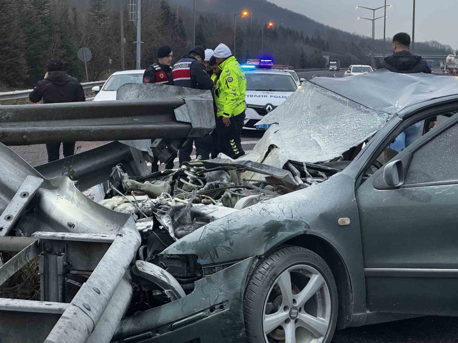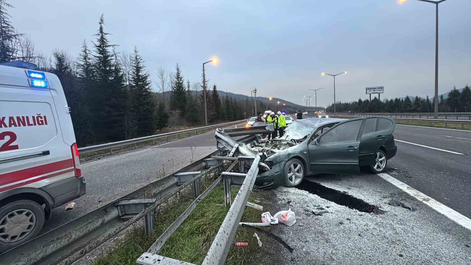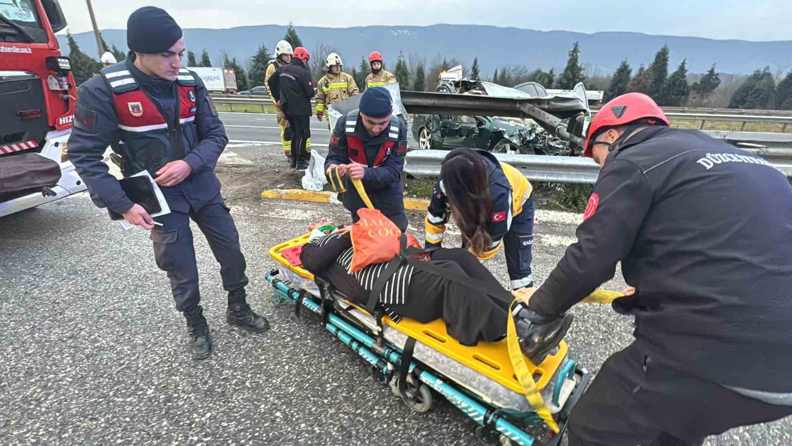 Düzce’de feci kaza: Otomobil bariyerlere saplandı, 8 kişi yaralandı