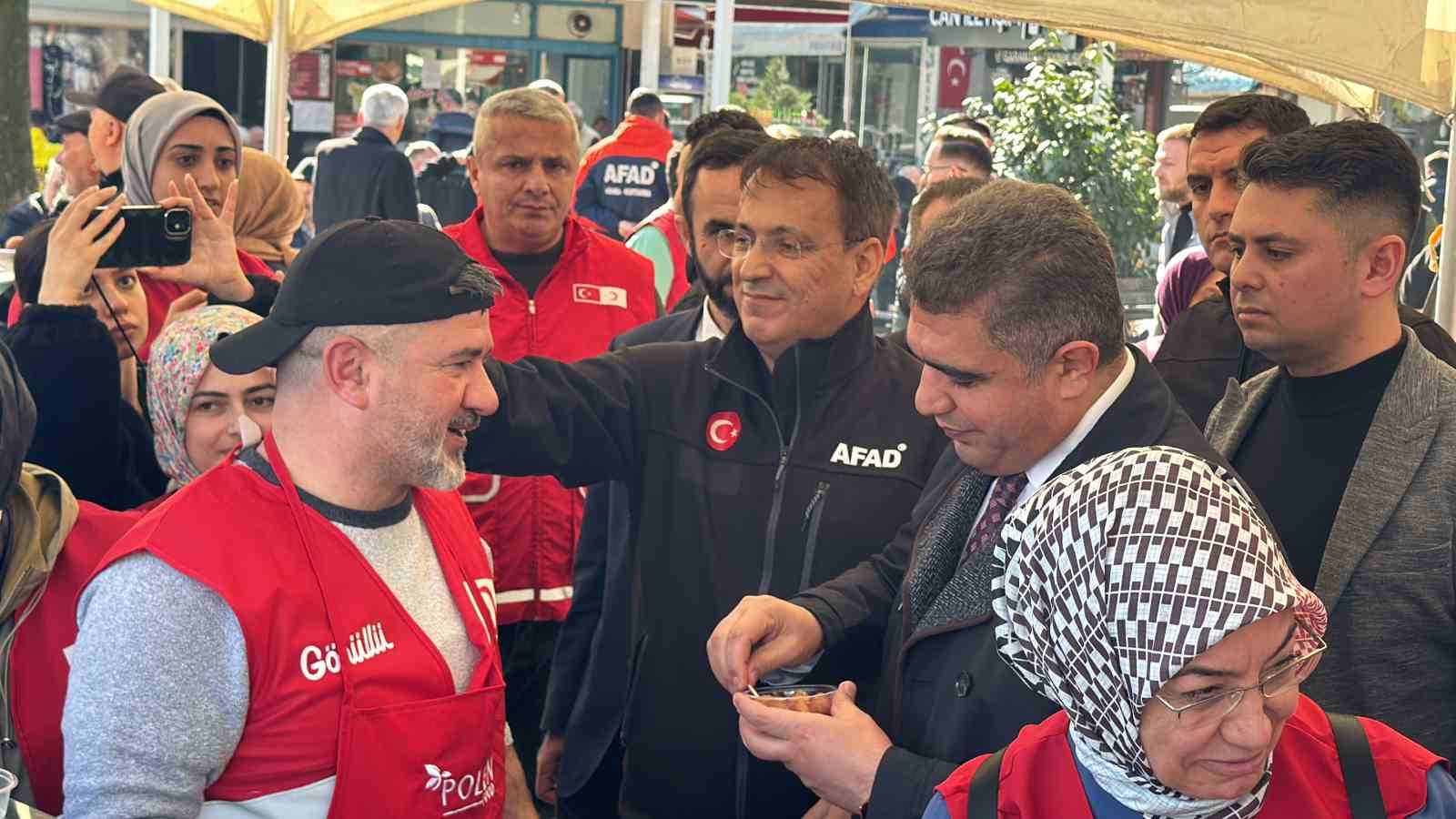Düzcelilerin duyarlı davranarak deprem bölgelerine yardım yaptığını aktaran Vali Selçuk Aslan, “Düzce halkı bir ve bütün oldu. Tabiri caizse Düzce halkı yardım da yarıştı. Deprem bölgesine 781 arama kurtarma uzmanları olmak üzere bin 865 personel, 468 araç ve ekipmanla desteğe gidildi” dedi.