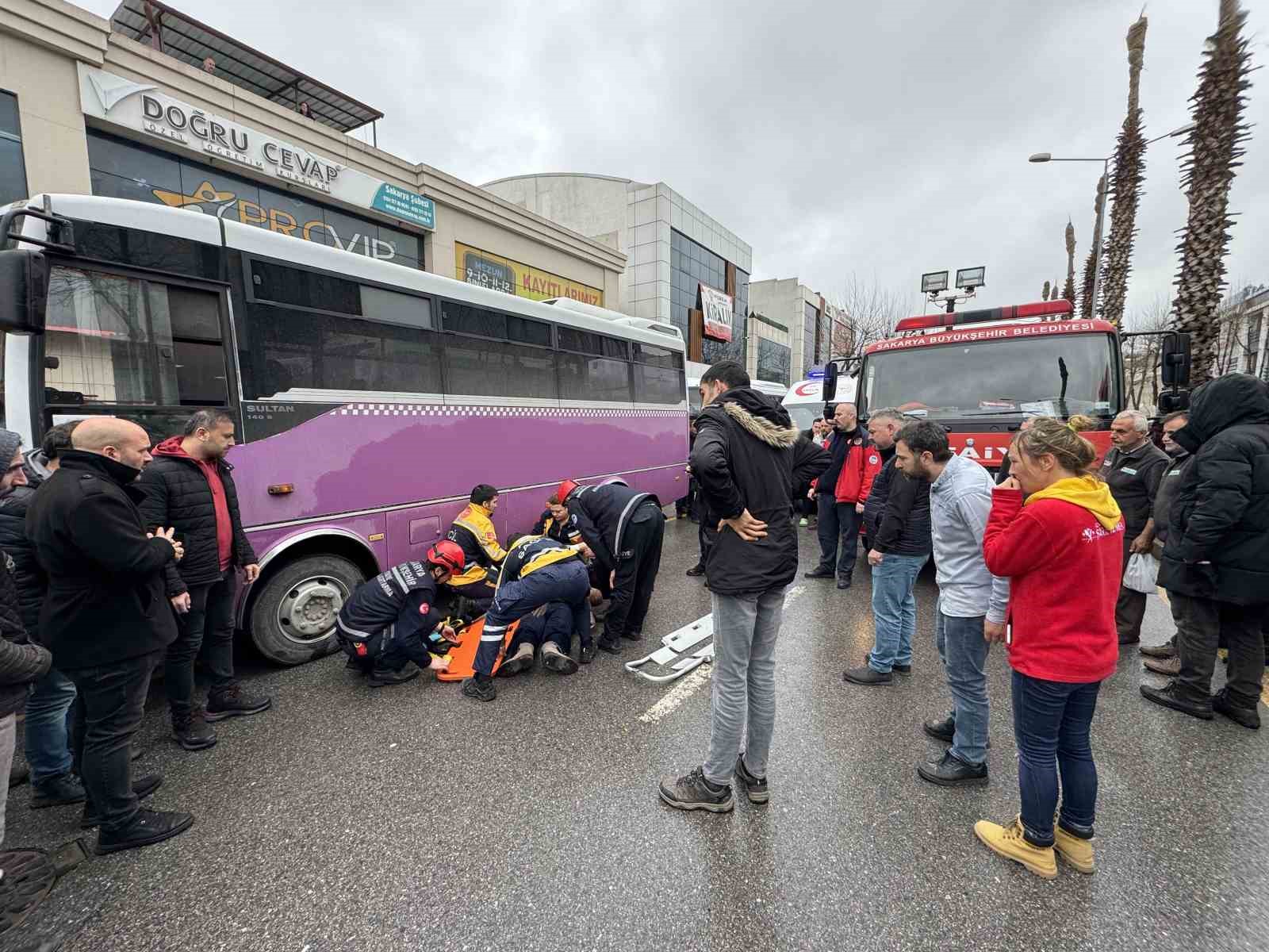 Kaza, dün saat 15.30 sıralarında Yenigün Mahallesi Yeni Cami Bulvarı üzerinde meydana gelmişti. K.K. kontrolündeki 54 J 2062 plakalı özel halk otobüsü geri manevra yaptığı esnada Meral Genç Kolak (36) otobüsün altında kaldı. Yaralı kadının acı feryatlarını duyan çevredeki vatandaşlar yardıma koşarken, bölgeye sağlık, itfaiye ve polis ekipleri sevk edildi. Olay yerine gelen itfaiye ekipleri, aracın altında kalan kadını kurtararak sağlık ekiplerine teslim etti. İlk müdahalesi yapılan yaralı, Sakarya Eğitim ve Araştırma Hastanesi’ne kaldırıldı. Yaralı kadının yoğun bakımda olduğu ve sağlık durumunun ciddiyetini koruduğu öğrenildi.