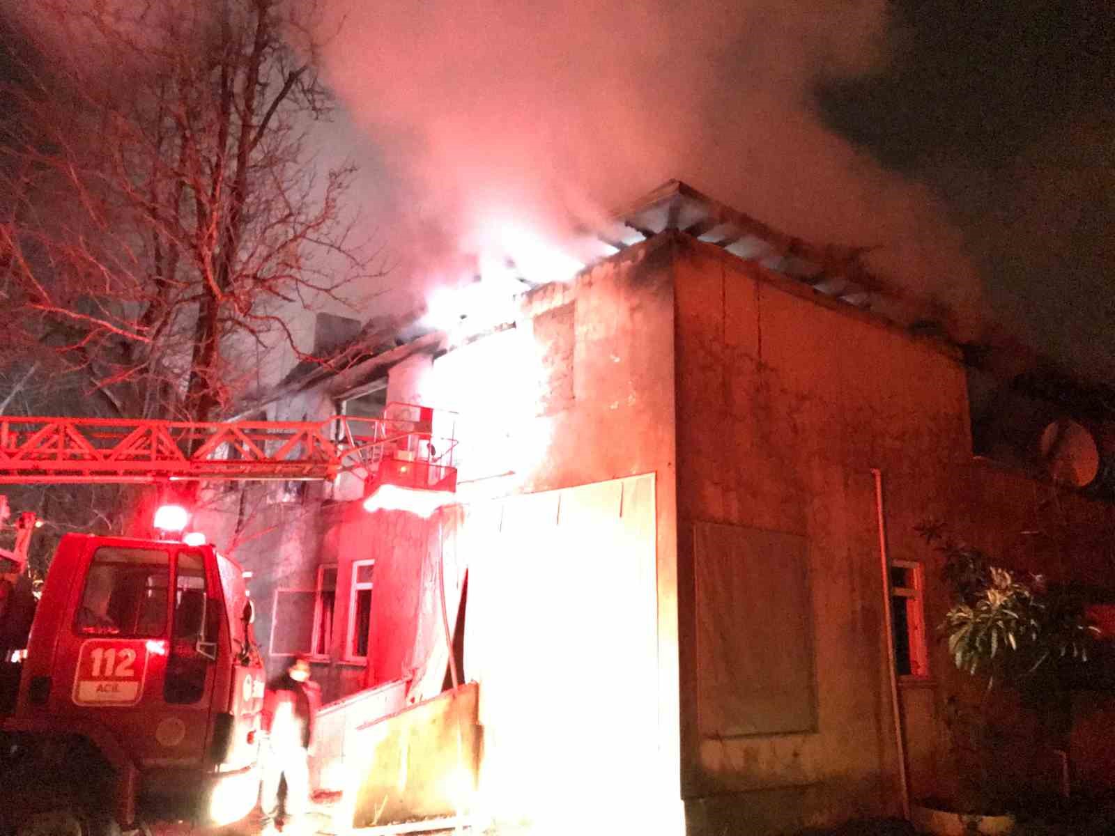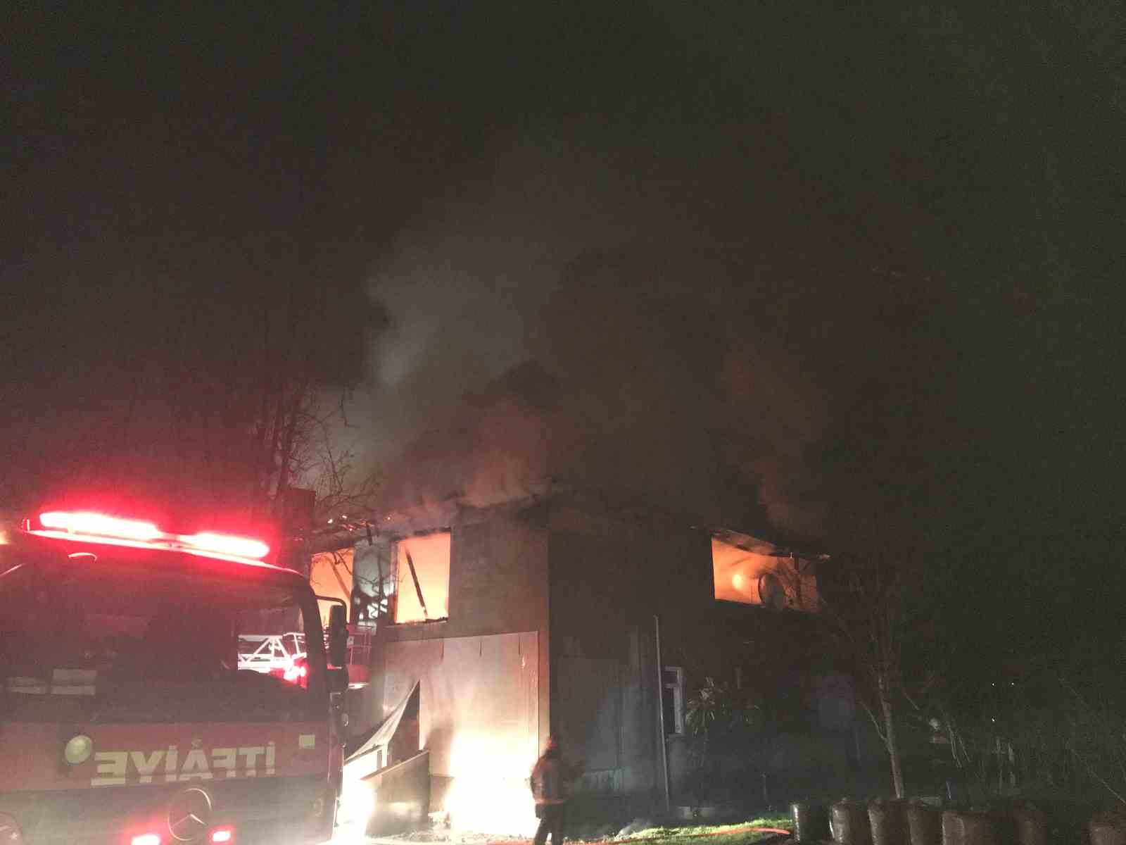 Sakarya’nın Akyazı ilçesinde alev alev yanan iki katlı ev itfaiye ekiplerinin uzun uğraşları neticesinde söndürüldü.