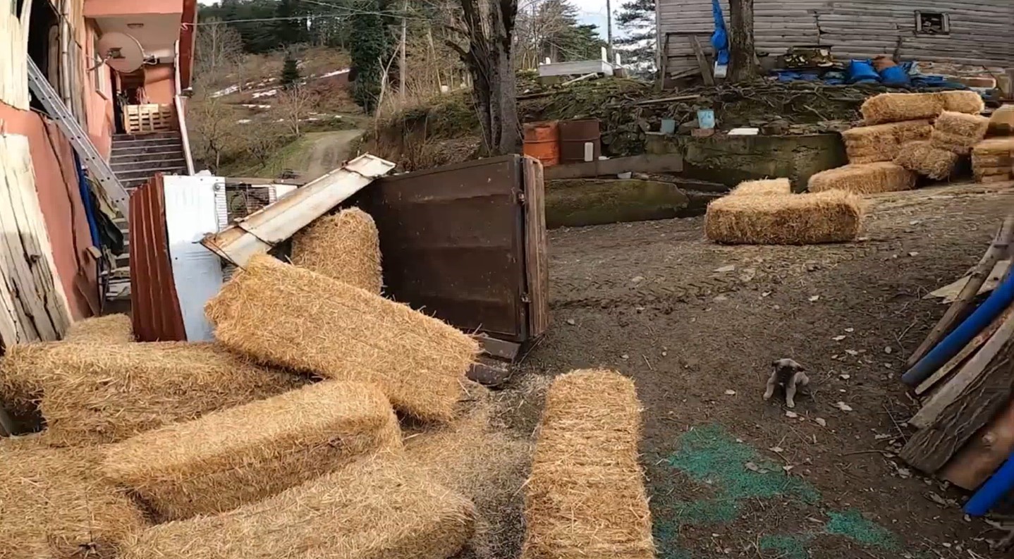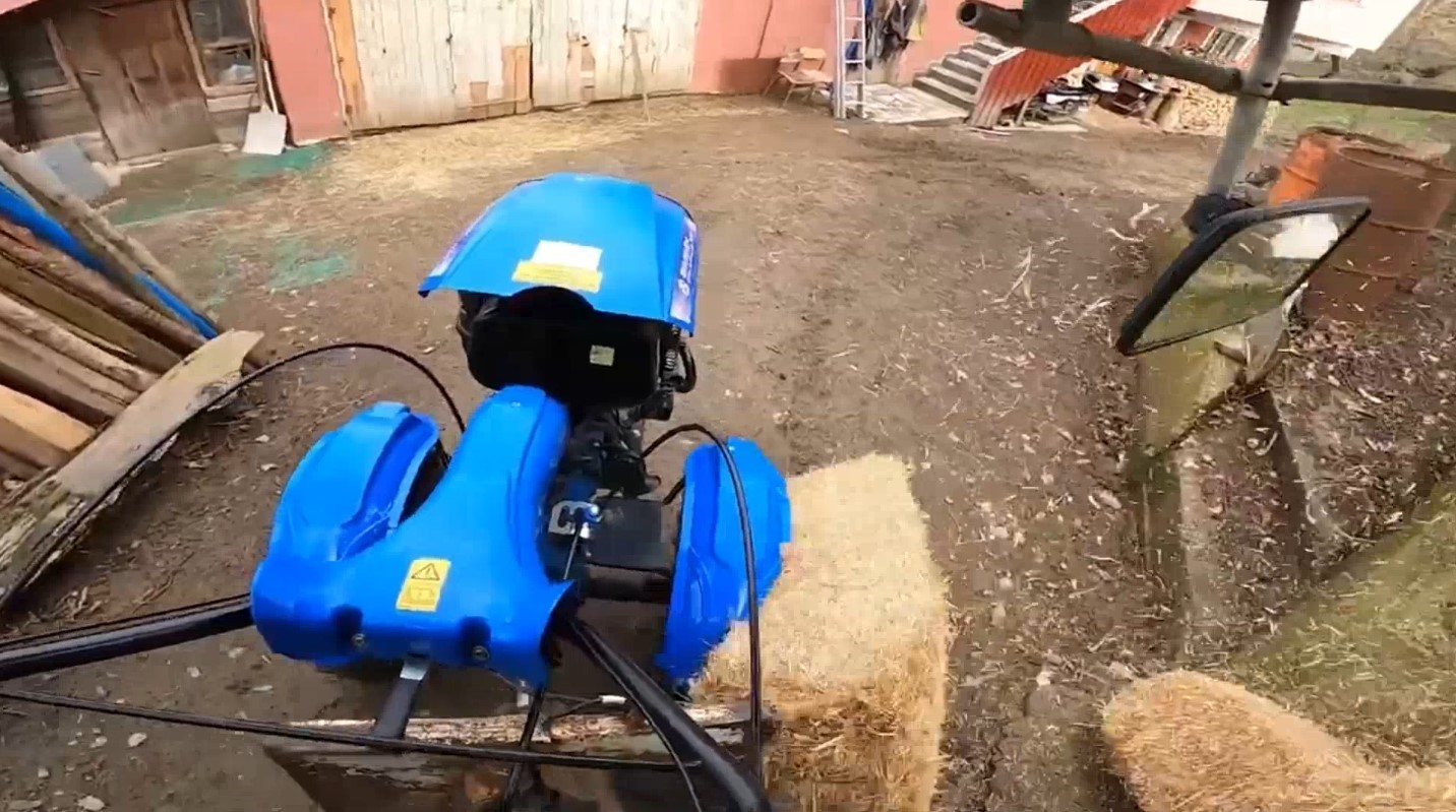 Kafa kamerası görüntülerinde patpat ile seyir halinde olan Fatih Kıyoğlu’nun aracı, saman balyalarını taşımaya çalıştığı sırada devriliyor.