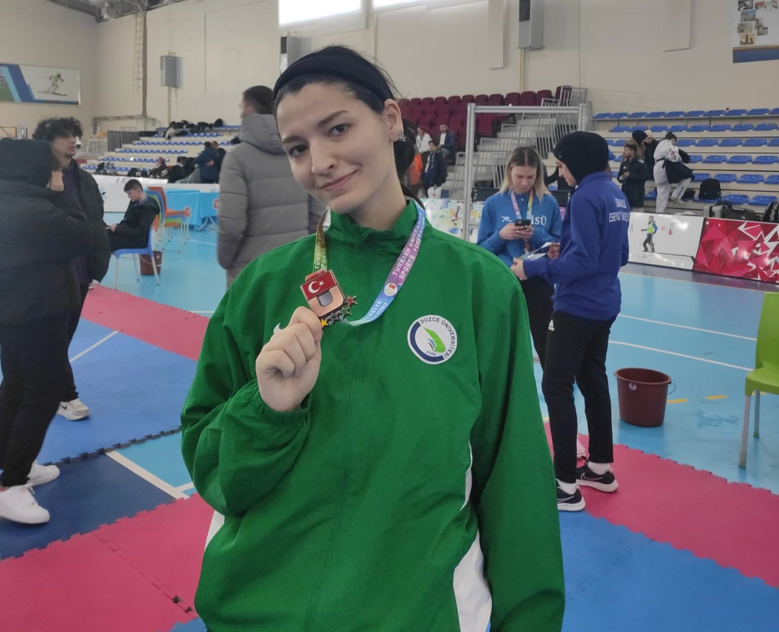 Düzce Üniversitesi Spor Bilimleri Fakültesi Antrenörlük Bölümü öğrencisi Sefa Tamberk’in 58 kilo erkekler sıkletinde üçüncü olarak bronz madalya kazanmasının ardından, Düzce Üniversitesi Mühendislik Fakültesi Mekatronik Mühendisliği Bölümü 2. sınıf öğrencisi Hümeyra Kar, +73 kilo kadınlar sikletinde Türkiye üçüncüsü olarak yine bronz madalya kazanma başarısı gösterdi.