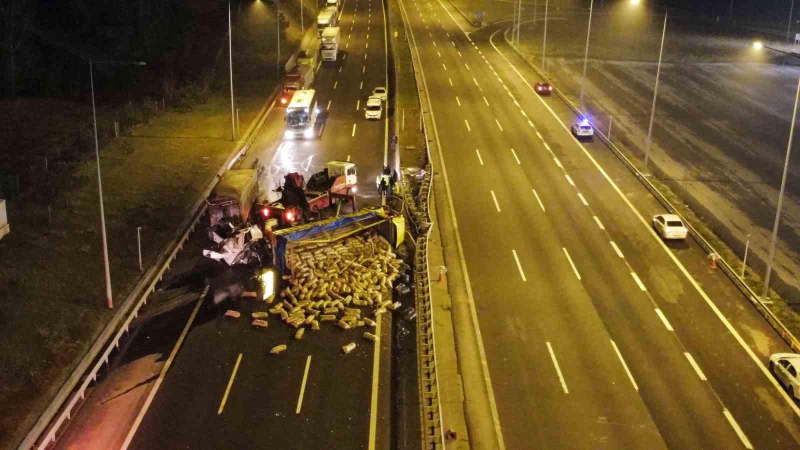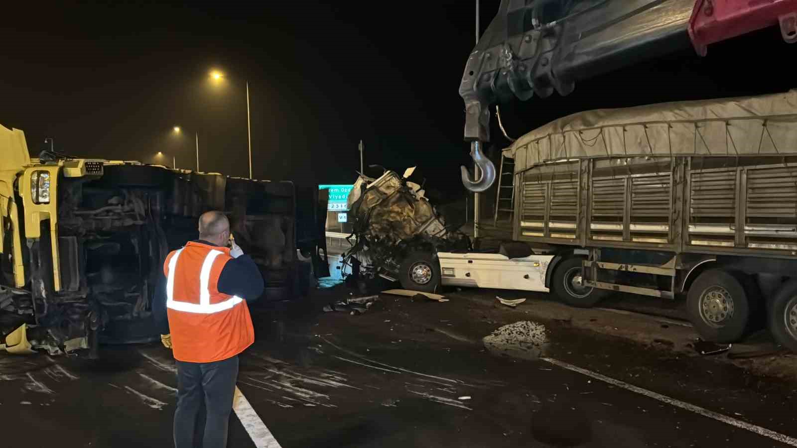 Tır ile kamyon çarpıştı, otoyol trafiğe kapandı