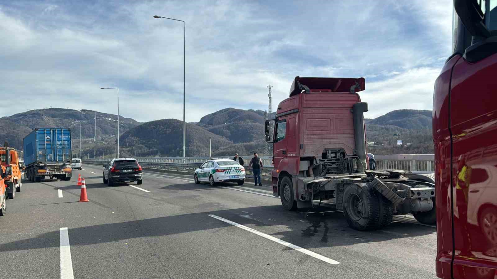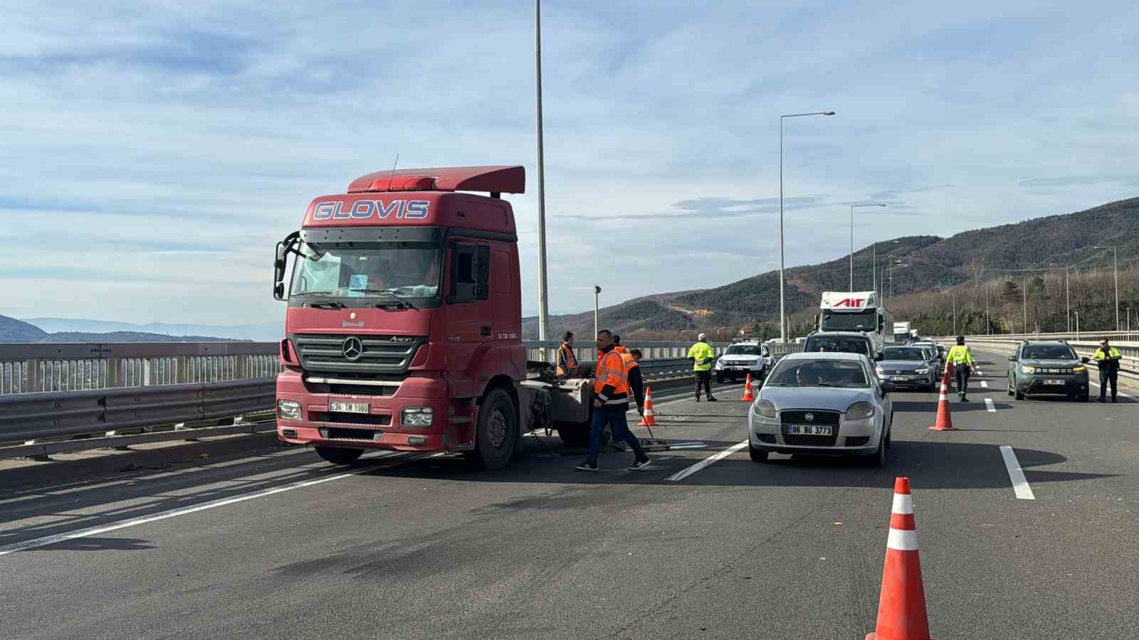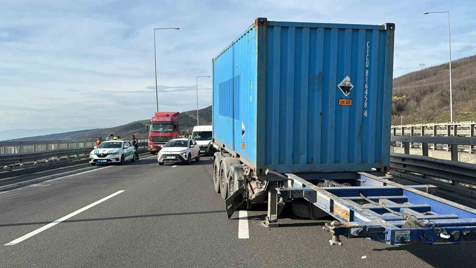 Tırın dorsesi koptu, otoyolda trafik durdu