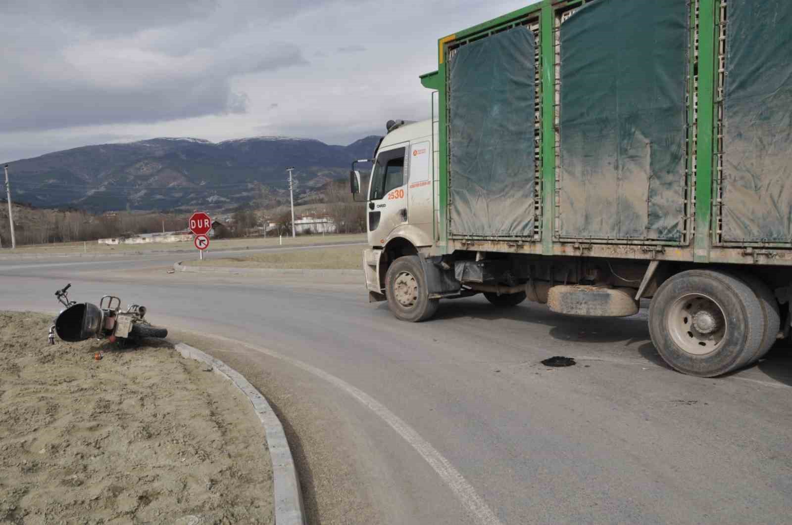 Bolu’nun Mudurnu ilçesinde yaklaşık 1 ay önce hizmete açılan kavşakta, kamyon ile çarpışan motosikletin sürücüsü yaralandı.